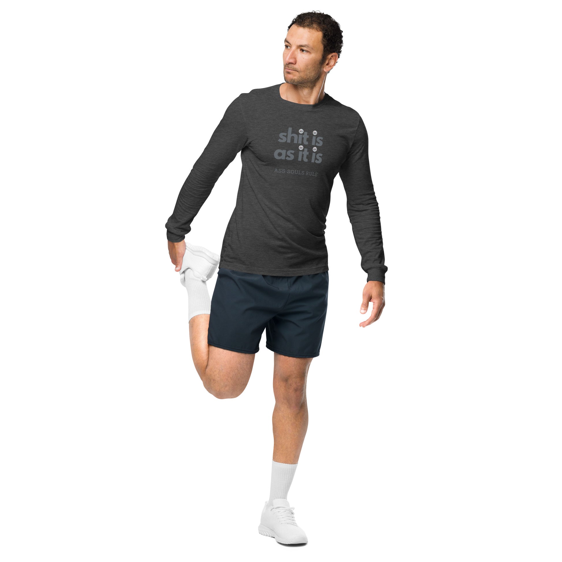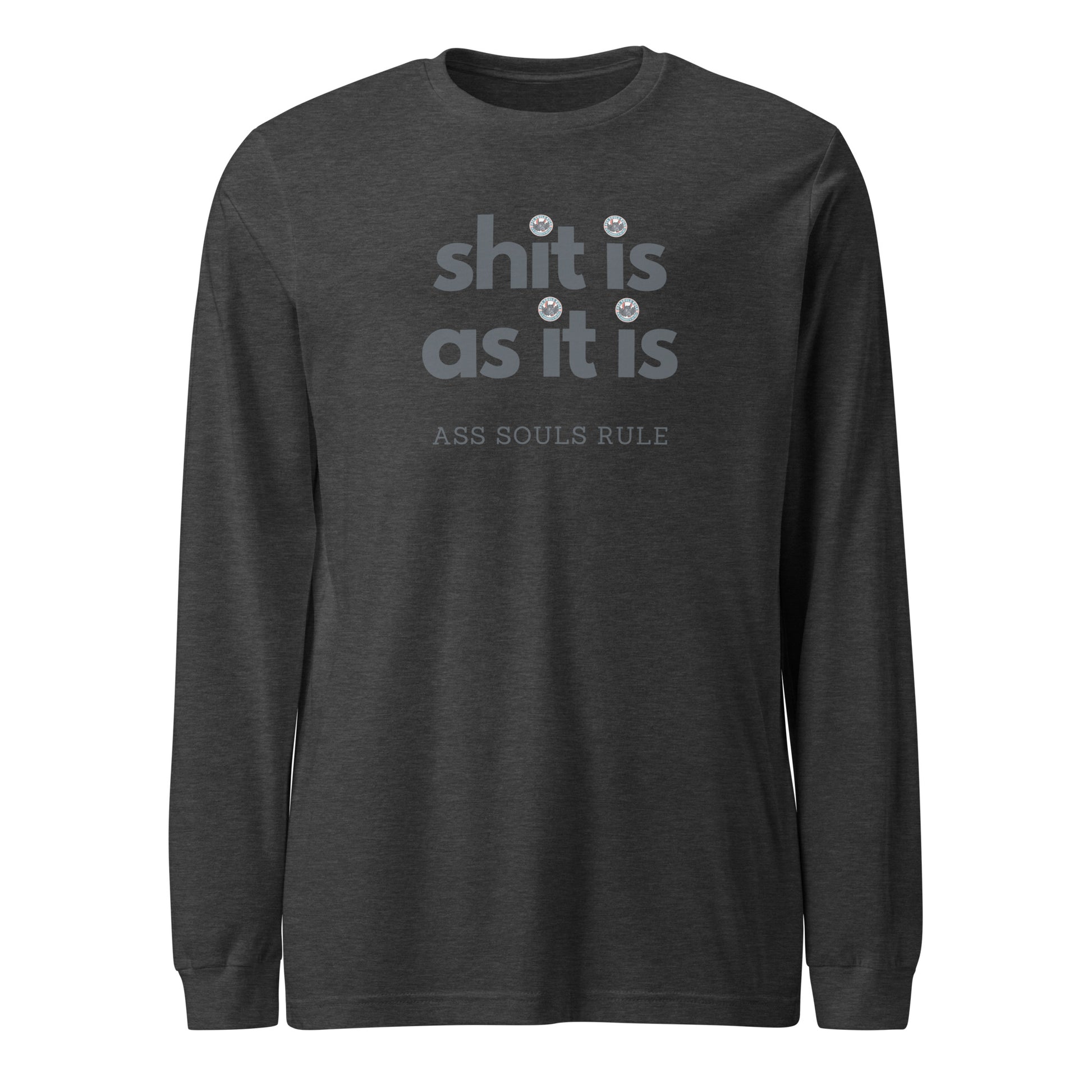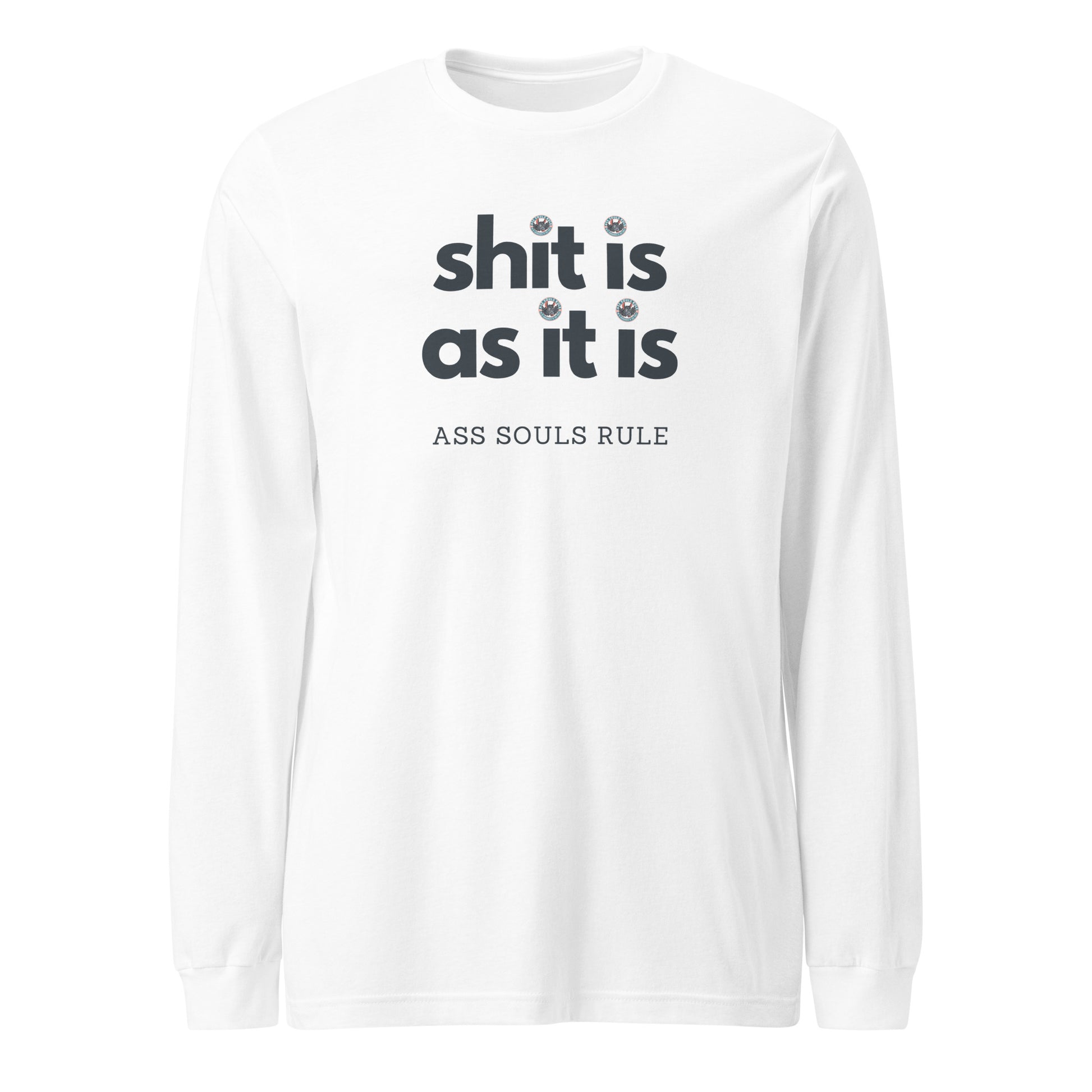 Enrich your wardrobe with a versatile ASR long sleeve tee. For a casual look, combine it with your favorite jeans, and layer it with a button-up vest, a zip-up hoodie, or a jean jacket. Dress it up with formal trousers or chinos to achieve a more sort of professional look. Shit Is As It Is.