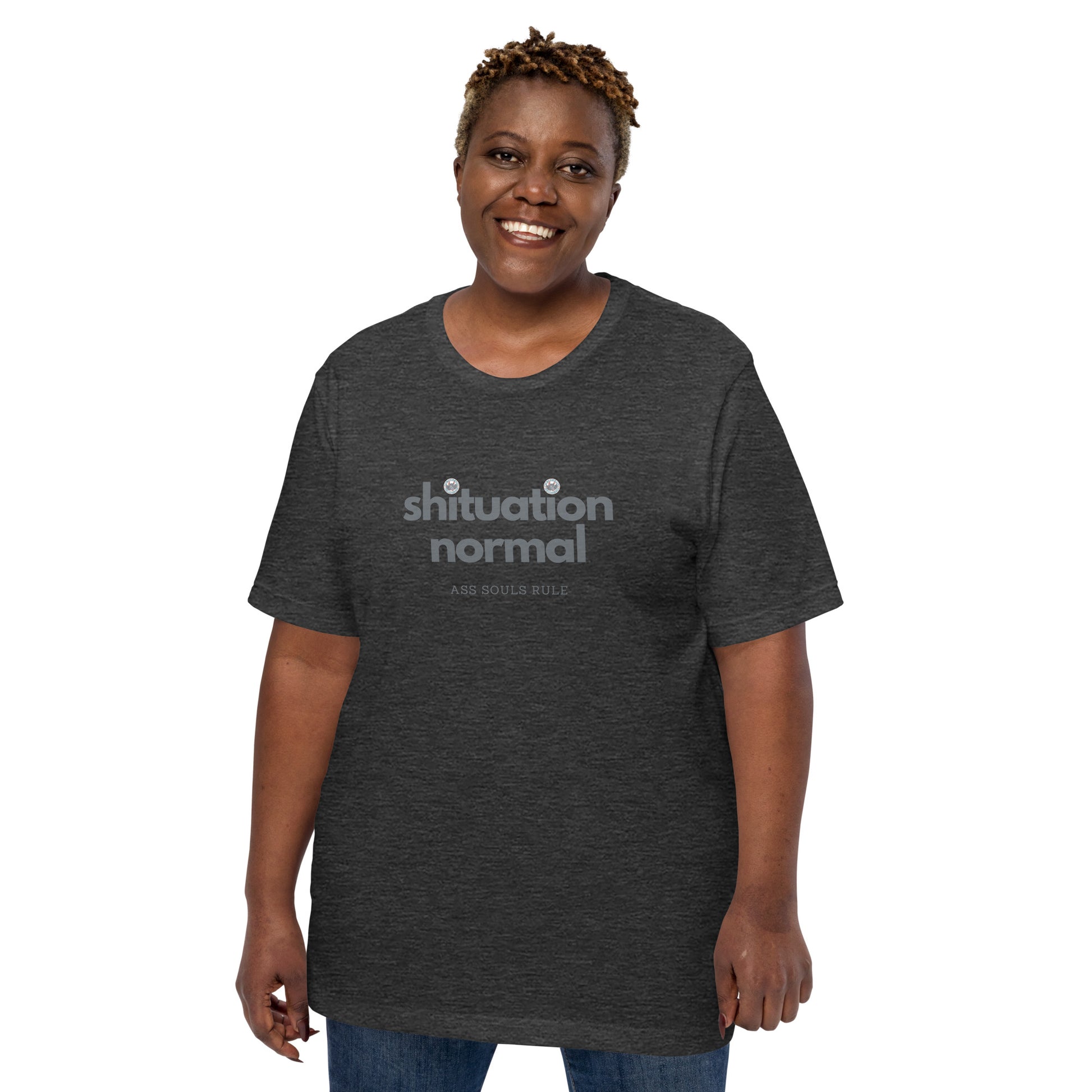 This Shituation Normal t-shirt is everything you've dreamed of and more. It feels soft and lightweight, with the right amount of stretch. It's comfortable and flattering for all.